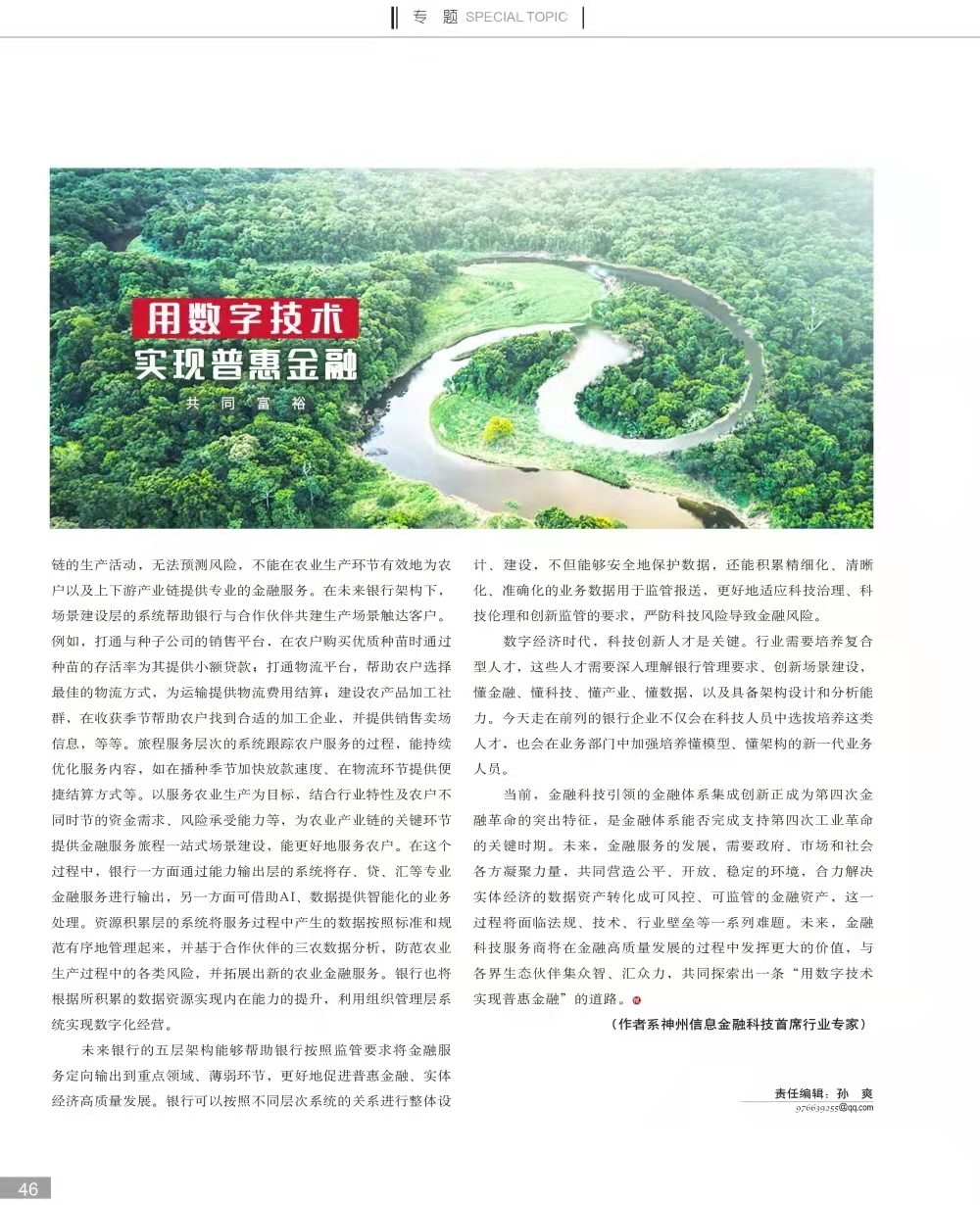 当前,金融科技引领的金融体系集成创新正成为第四次金融革命的突出特征,是金融体系能否完成支持第四次工业革命的关键时期。未来,金融服务的发展,需要政府、市场和社会各方凝聚力量,共同营造公平、开放、稳定的环境,合力解决实体经济的数据资产转化成可风控、可监管的金融资产,这一过程将面临法规、技术、行业壁垒等一系列难题。未来,金融科技服务商将在金融高质量发展的过程中发挥更大的价值,与各界生态伙伴集众智、汇众力,共同探索出一条“用数字技术实现普惠金融”的道路。