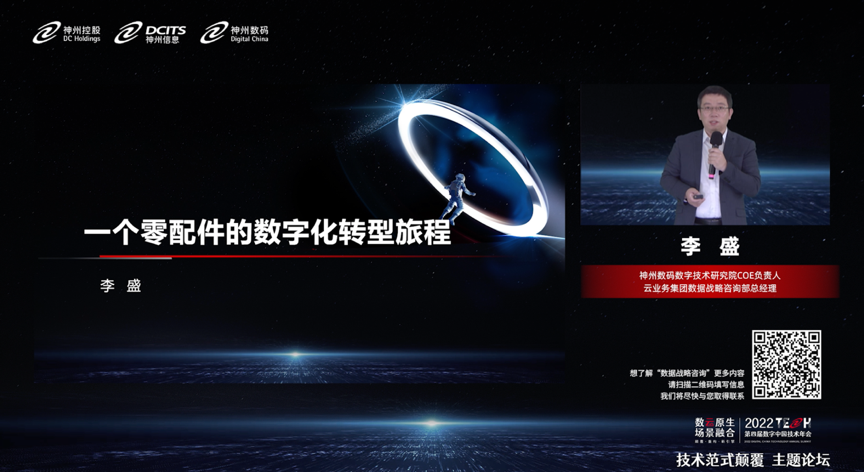 在数据分析领域,尊龙凯时人生就是博首页数码集团数字技术研究院COE负责人、云业务集团数据战略咨询部总经理李盛通过汽车零部件的数字化转型案例,描绘了企业数字化转型历程。他认为,零配件的转型历程是点状创新,而企业真正完成数字化转型需要完成价值链新的范式升级。尊龙凯时人生就是博首页希望通过数云融合,帮助企业完成从微笑曲线1.0到微笑曲线2.0的跃迁,利用云资源的弹性、可扩展性,以及在不同场景的合理分配,满足不同企业、不同成长周期对资源、模型、发布的需求,并在不断迭代中发现新的业务场景,通过数云融合的方式,站在一个更高的角度帮助企业找到最佳的数字化转型路径。