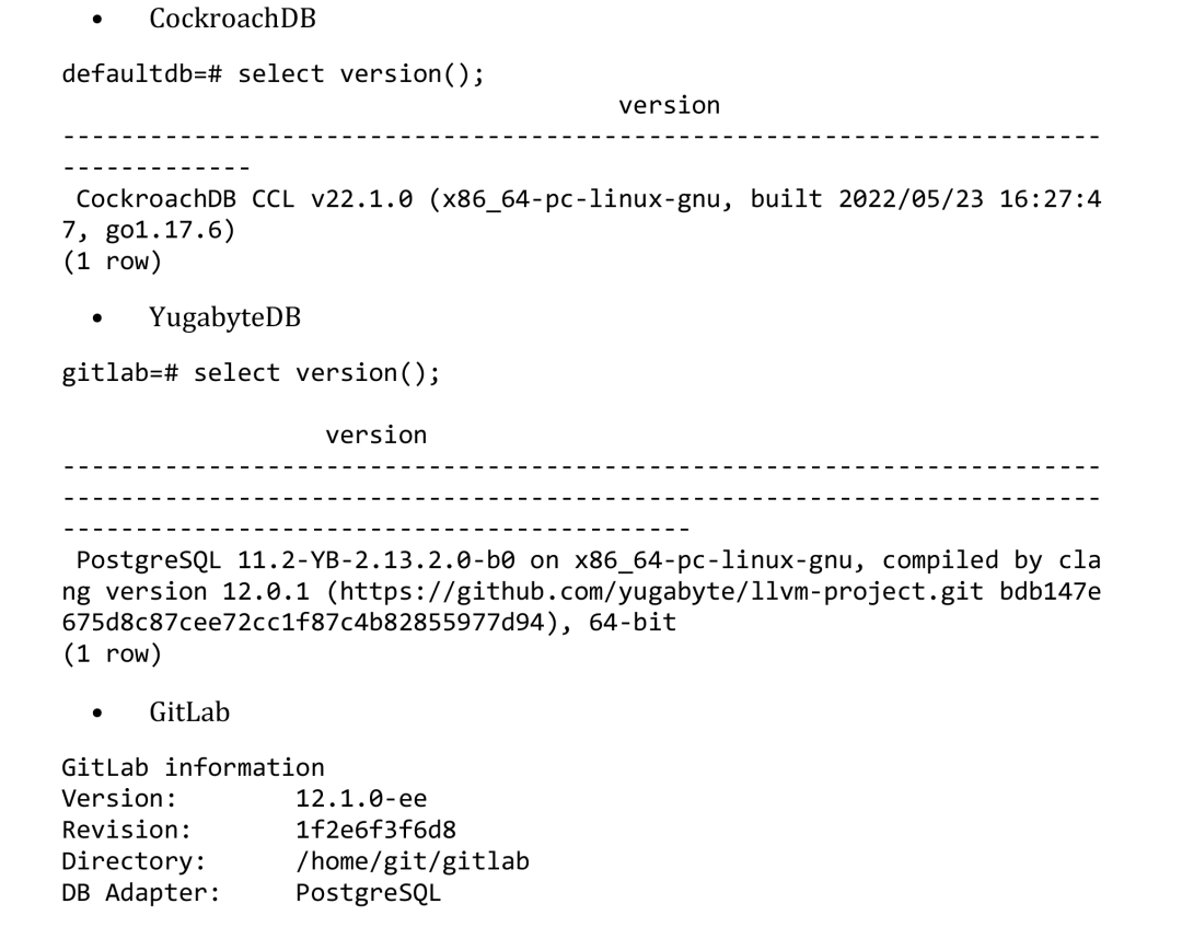 数字中国·星火文集 | GitLab在CockroachDB和YugabyteDB上的兼容性对比测试