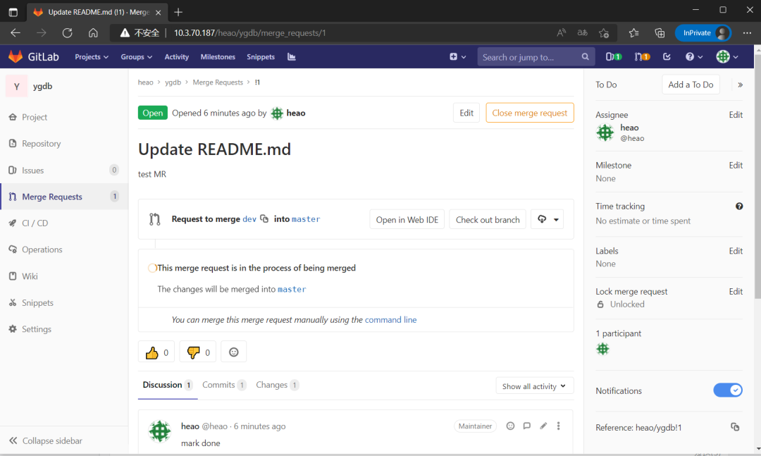 对比结果:CockroachDB和YugabyteDB出现相同的情况:提交Merge请求后持续加载中,一段时间后页面出现报错提示,无法再次提交merge,日志无异常。
