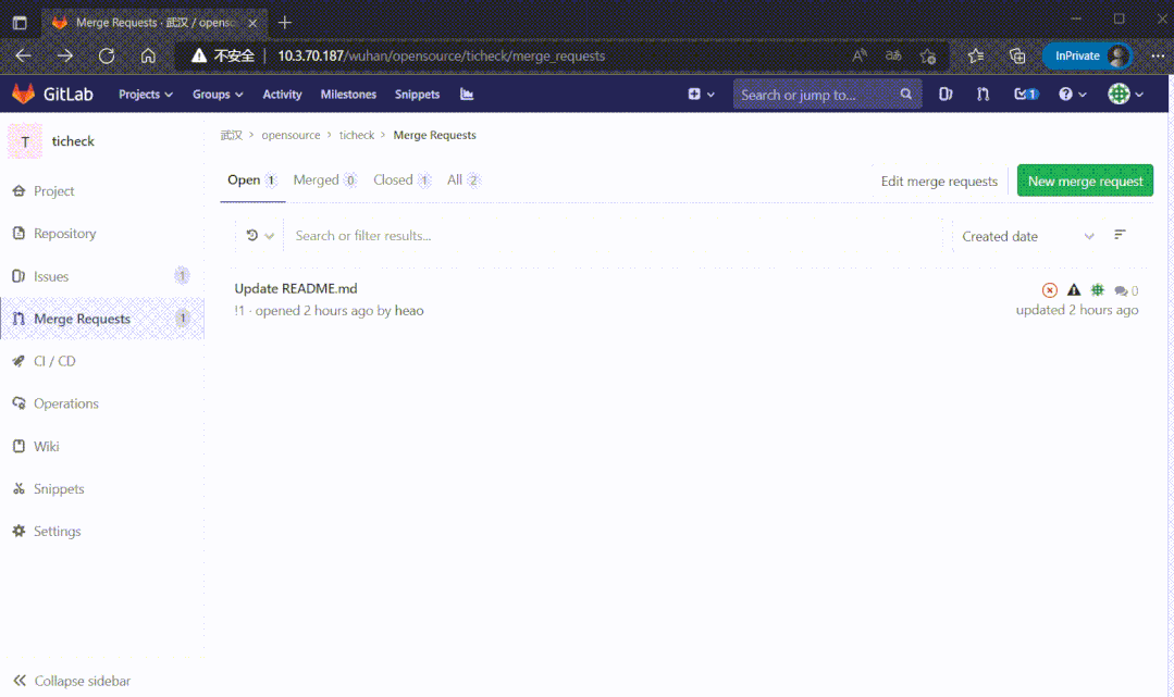 除了差10个左右索引,其他都正常。这时候把GitLab数据库指向到这个新库,启动程序看能否打开页面: