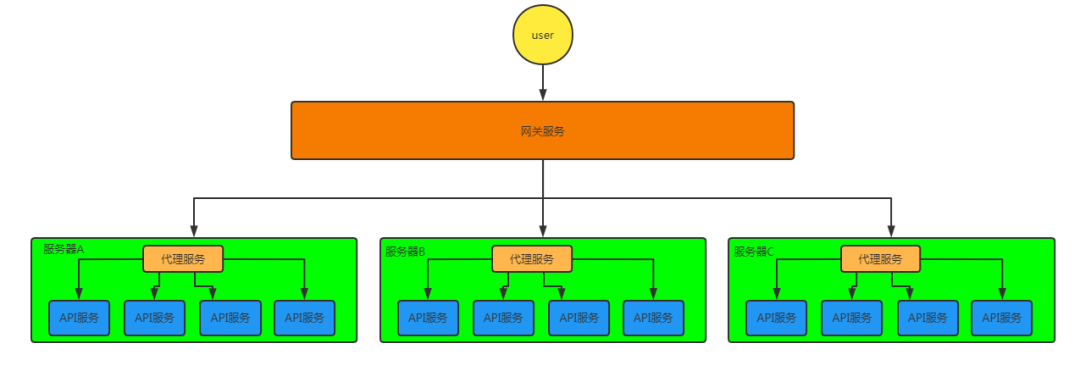 每个服务器的ip地址是不同的,用户想要访问不同的API接口,还需要知道这个API所在的服务器地址,无法提供统一的接口地址,而且用户只需要知道API的地址就可以直接访问API,数据没有安全性的防护,因此需要引入网关服务,将所有运行节点的API接口注册到网关服务上,通过网关将接口地址提供用户使用,用户只需要访问网关服务器就可以访问所有运行节点上的接口,在网关上增加权限校验的功能,保护数据的安全。