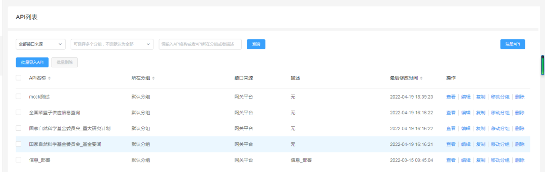 注册到网关上的API接口